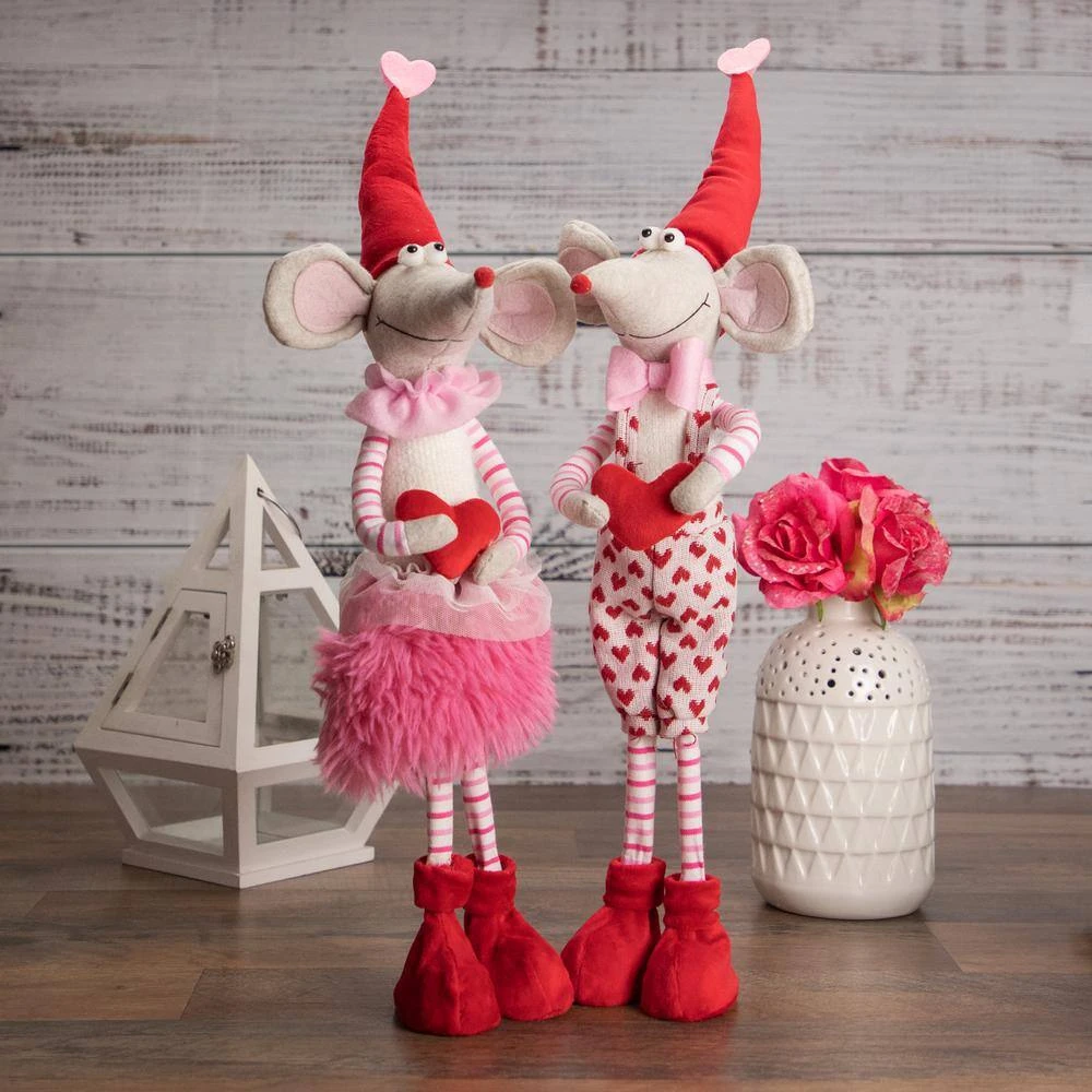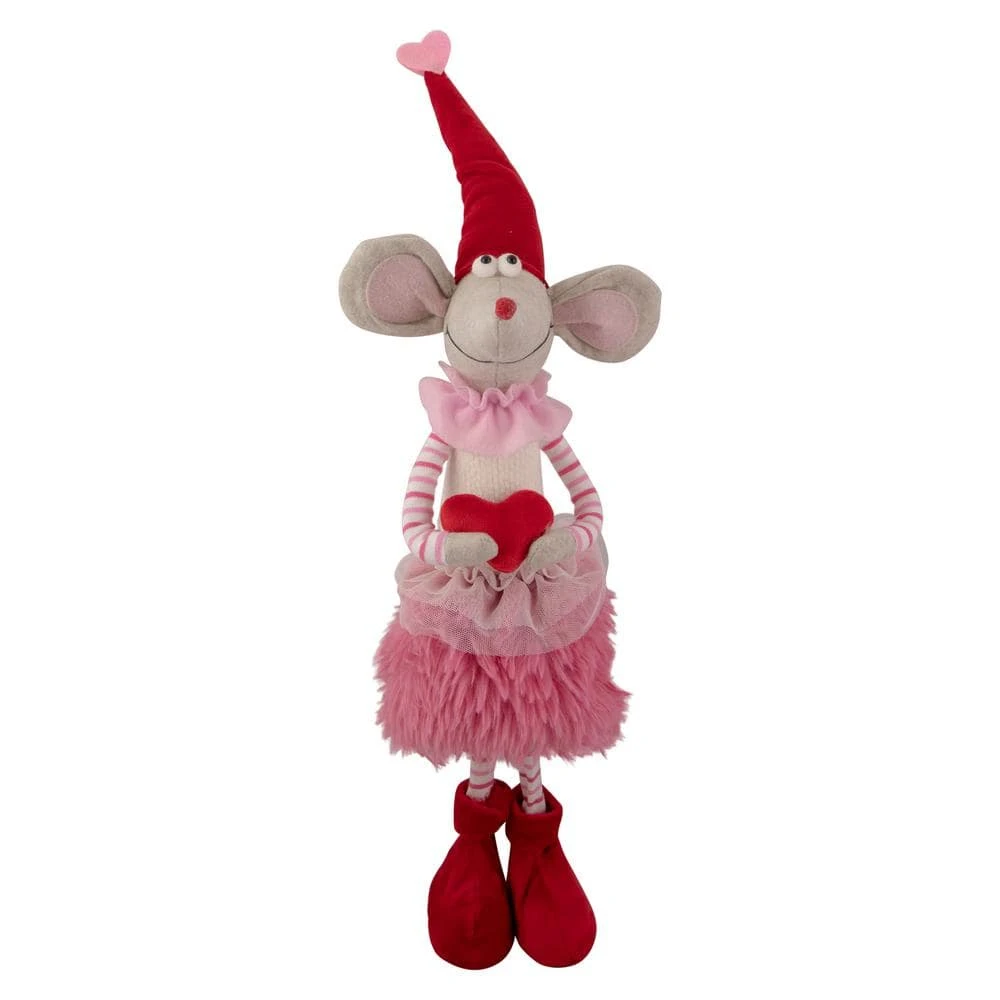 She’s ready for the season of love. Are you ready. Perk up your holiday decor with this adorable mouse decoration. Adorned in her red and white outfit with a large red heart in her hands. This mouse is perfect for adding to any table or mantle place for a festive pop. Product Features: Standing girl mouse plush figure. Mouse is wearing a festive red and white outfit while holding a large red heart. Perfect addition to any mantle or table top. Recommended for indoor use. Dimensions: 20 in. H x 7 in. W x 11 in. D. Material(s): foam/polyester.