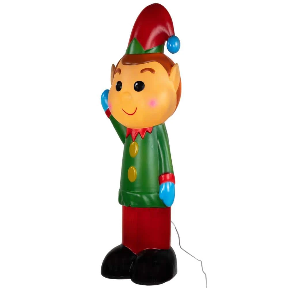 Add a touch of whimsy and nostalgia to your outdoor Christmas decor with this charming elf figure. This charming elf adorned in his timeless red green and blue attire stands ready to greet your holiday guests with a warm and festive hello. Illuminated by (2) replaceable clear C7 bulbs this delightful outdoor decoration will brighten up your Winter nights and transport you back to the magical Christmases of yesteryear. Bring a smile to your neighborhood and celebrate the season with this classic and endearing holiday favorite. Product Features: Lighted outdoor elf decoration. Retro style blow mold construction. Lighted with (2) replaceable clear C7 bulbs. Bulb type: incandescent. 60 in. white lead cord. Contains 1 plug – can not connect other items. UL approved and certified for indoor or outdoor use. 120-Volt 60 Hz 0.12 Amp. Dimensions: 40 in. H x 12 in. W x 10 in. D. Material(s): plastic/glass bulbs/wire.