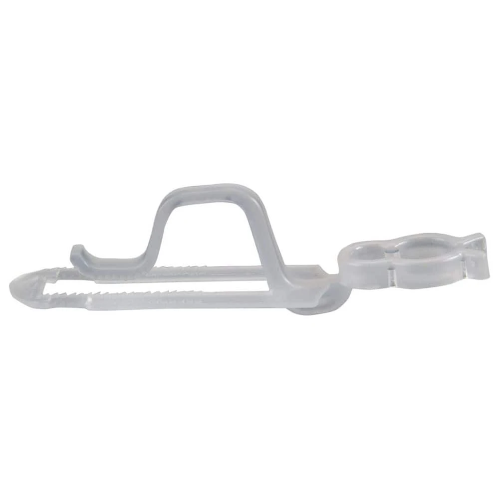 Make decorating a breeze instead of a chore while leaving time for you to enjoy all the holiday fun. Discreetly hang your holiday decor with these clear gutter and shingle clips. Light strings can attach to the clip through wire guides to securely hold lights without forcing or twisting. Features: Plastic gutter and shingle clip. Works with most C7 C9 mini icicle curtain and LED light sets. Can also be used for garland or other decorations. Snaps on gutters or slides under shingles. Recommended for indoor or outdoor use. Made of weatherproof and reusable material. Not intended for permanent installation; For seasonal use only. Hooks are designed to fit all standard gutters and shingles and work on most roofs. Dimensions: 3.5 in. H x 0.75 in. W x 1 in. D. Material(s): plastic. Note: Set includes 60 clips.