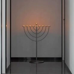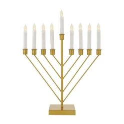 Illuminate your Hanukkah celebrations with this LED lighted dreidel outdoor decoration. This stunning dreidel features bright LED lights that cast a warm and inviting glow creating a festive ambiance in your outdoor space. The classic blue and white colors evoke the spirit of the holiday while the silver glitter sparkles. Whether displayed on your porch in your yard or as part of a larger holiday display this dreidel adds a touch of elegance and tradition to your festivities. A true symbol of joy tradition and unity. Product Features: Dreidel outdoor Hanukkah decoration. Pre-lit with 60 warm white lights. Bulb size: rice. Bulb type: LED. 9.5 ft. clear lead wire. Easy assembly required. Additional Product Features: LED lights use 90% less energy. Lights stay cool to the touch. Some assembly required. Ground stakes and cable ties included. Lights are UL approved and certified for indoor or outdoor use. Adapter: 4.5 Volt/3.6 W. 120 volts 60 Hz .2 amps. Cannot connect other items. Dimensions: 37 in. high x 18 in. wide. Base diameter: 19.75 in. Material(s): metal/plastic/wire/foam.