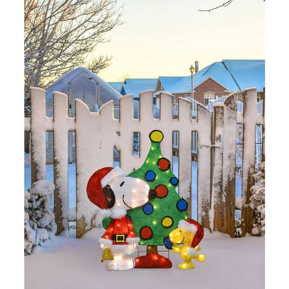 - Snoopy, Woodstock and Christmas tree are pre-lit from inside by 70-clear lights and is perfect to use during the day or night for a great display