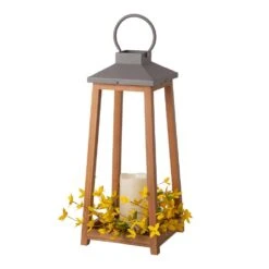 19.29 In. H Wooden/Metal Led Pillar Lantern With 3 Changeable Candle Rings Spring/Fall/Christmas