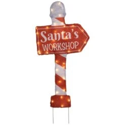Northlight 30 In. Santa’s Work Shop Christmas Yard Sign Red And White Warm White LED Lights