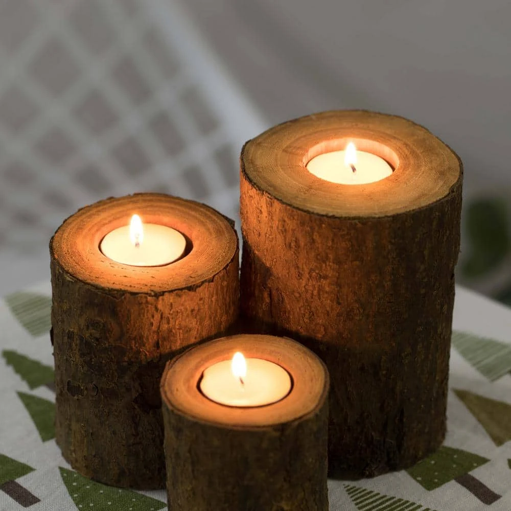 - Wooden tree stump candle holder will add a rustic appeal to your dining decor