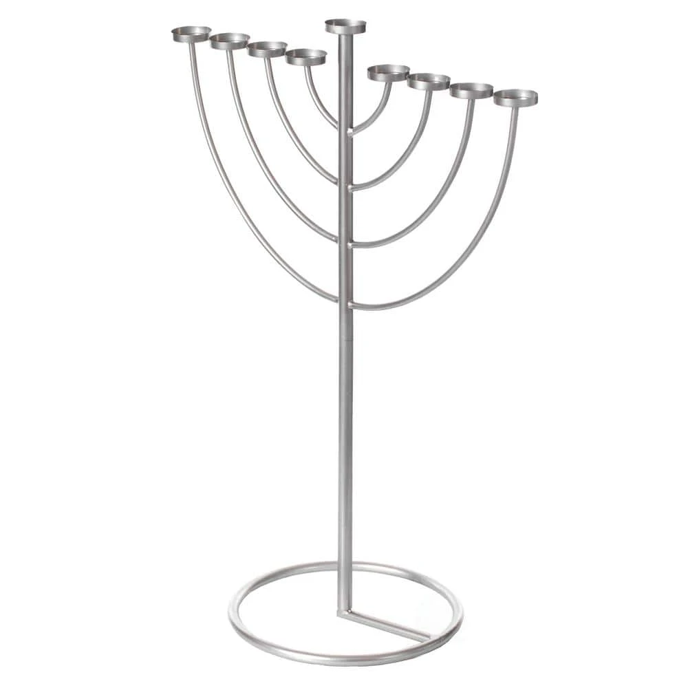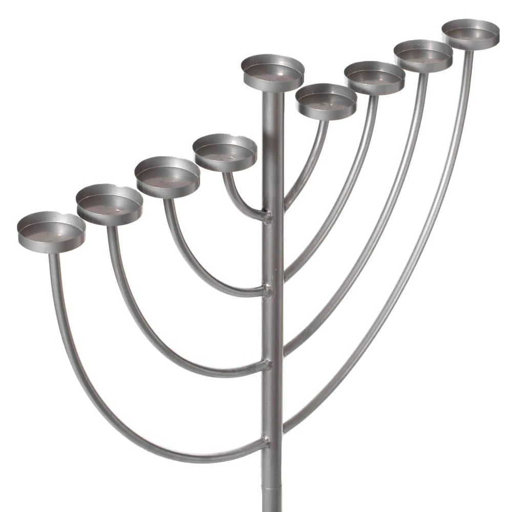 Let the light of Hanukkah illuminate your synagogue or home with this modern 9 branch Hanukkah menorah. This menorah is composed out of durable metal material. It will make a great addition to your Hanukkah celebrations.