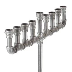 Let the light of Hanukkah illuminate your synagogue or home with this modern 9 branch Hanukkah menorah. This menorah is composed out of durable metal material. It will make a great addition to your Hanukkah celebrations.
