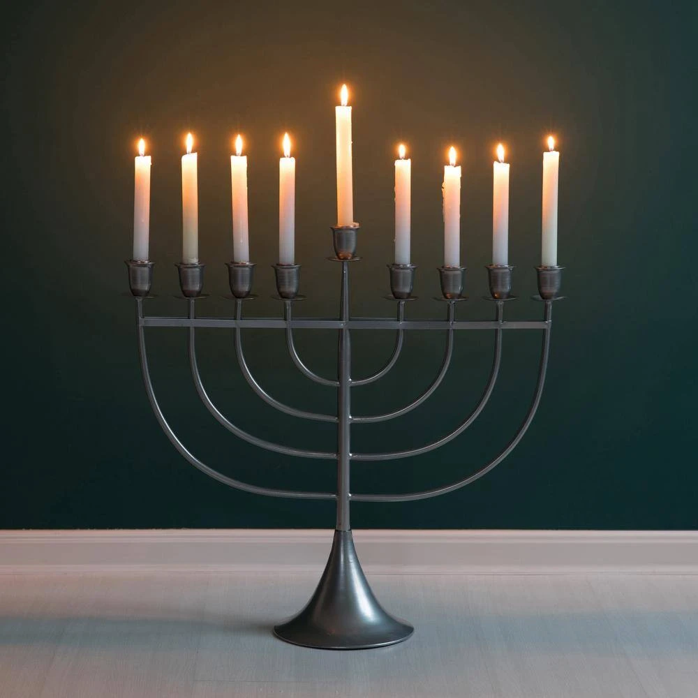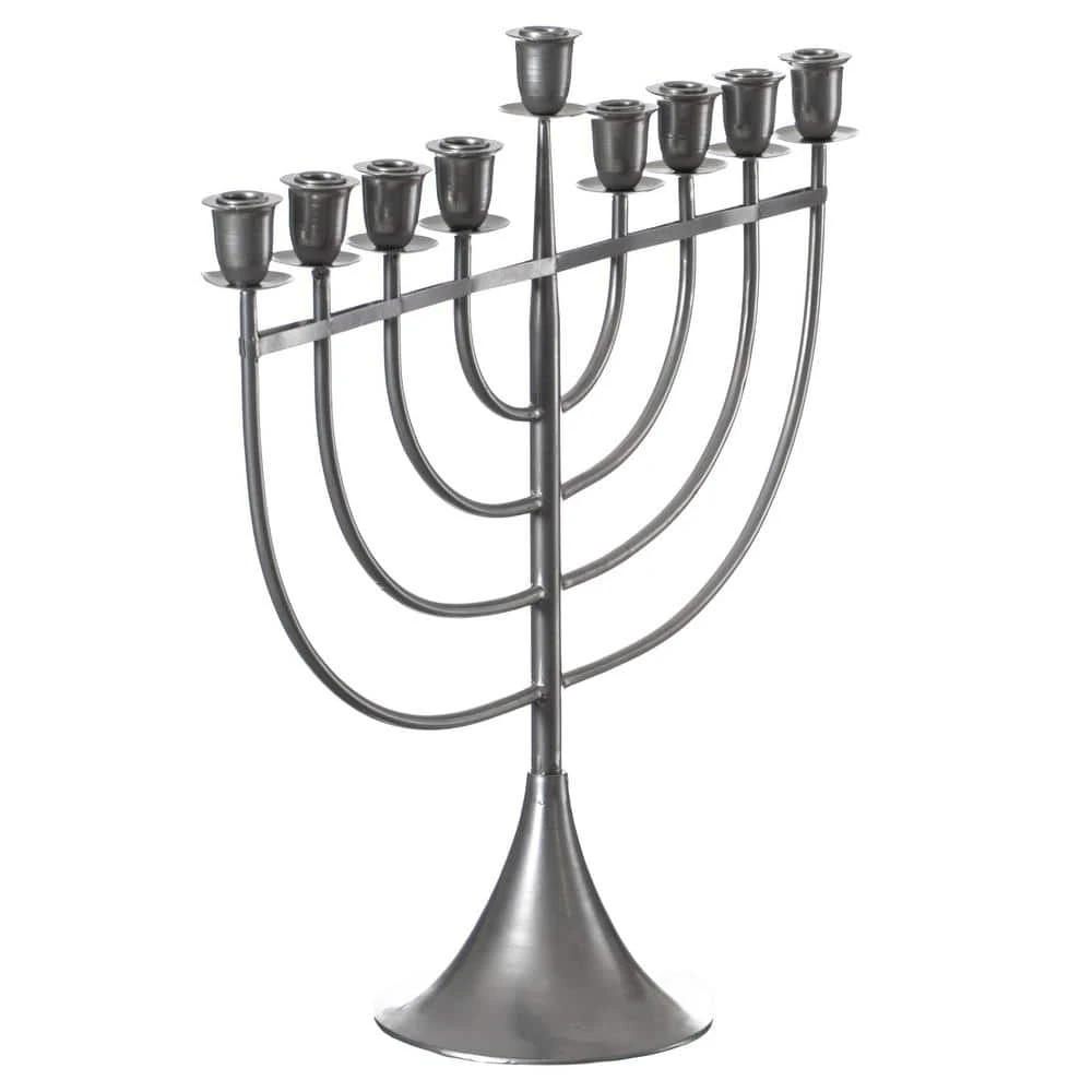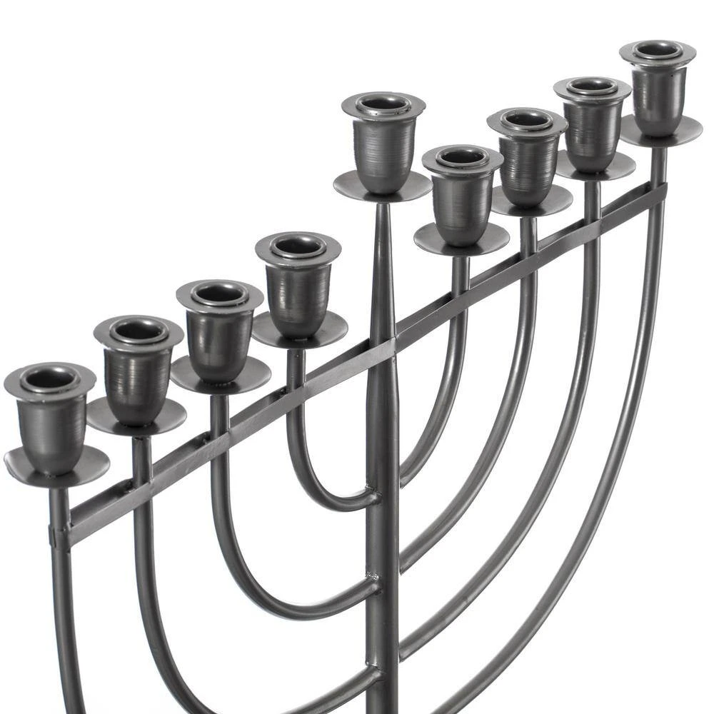 Create a warm inviting glow with this modern metal Hanukkah menorah. Its unique modern design will add a contemporary appeal to your entryway, dining room, living room, foyer or room corner. Use with a traditional white candle or get creative with bright colors that will add an undulating visual effect. Assembly is easy, the branches and stand come pre-assembled, so you will only need to slide them into place. Decorate your home while adding a warm and modern charm.