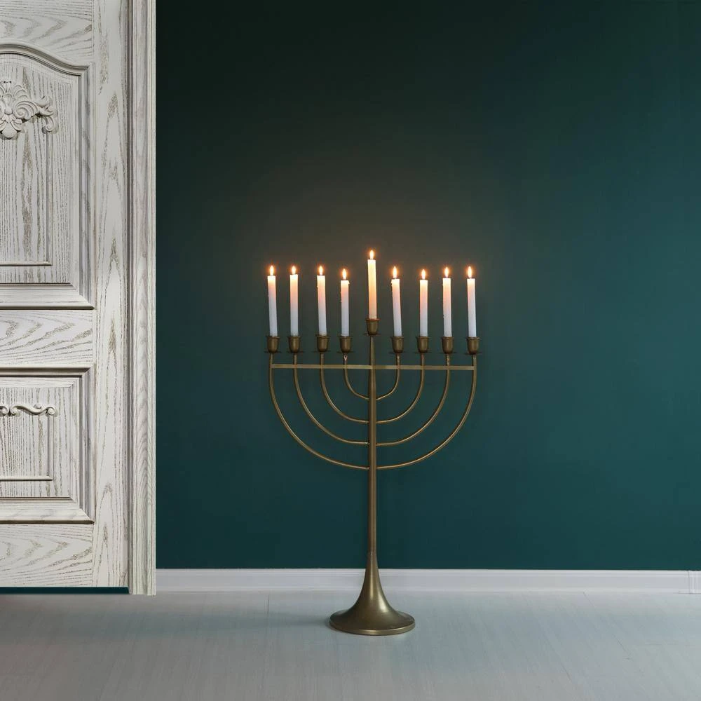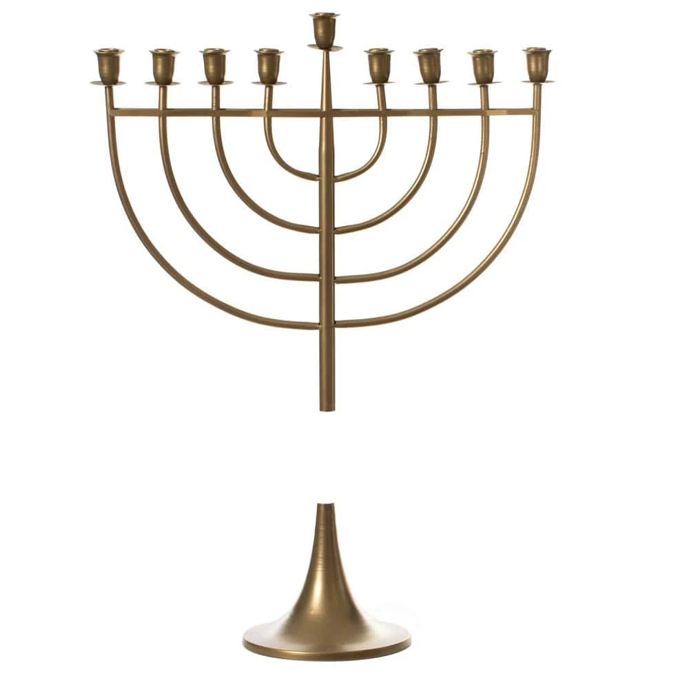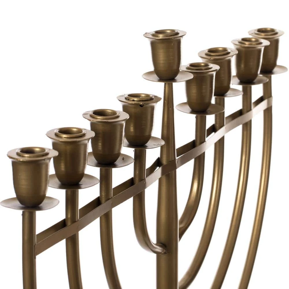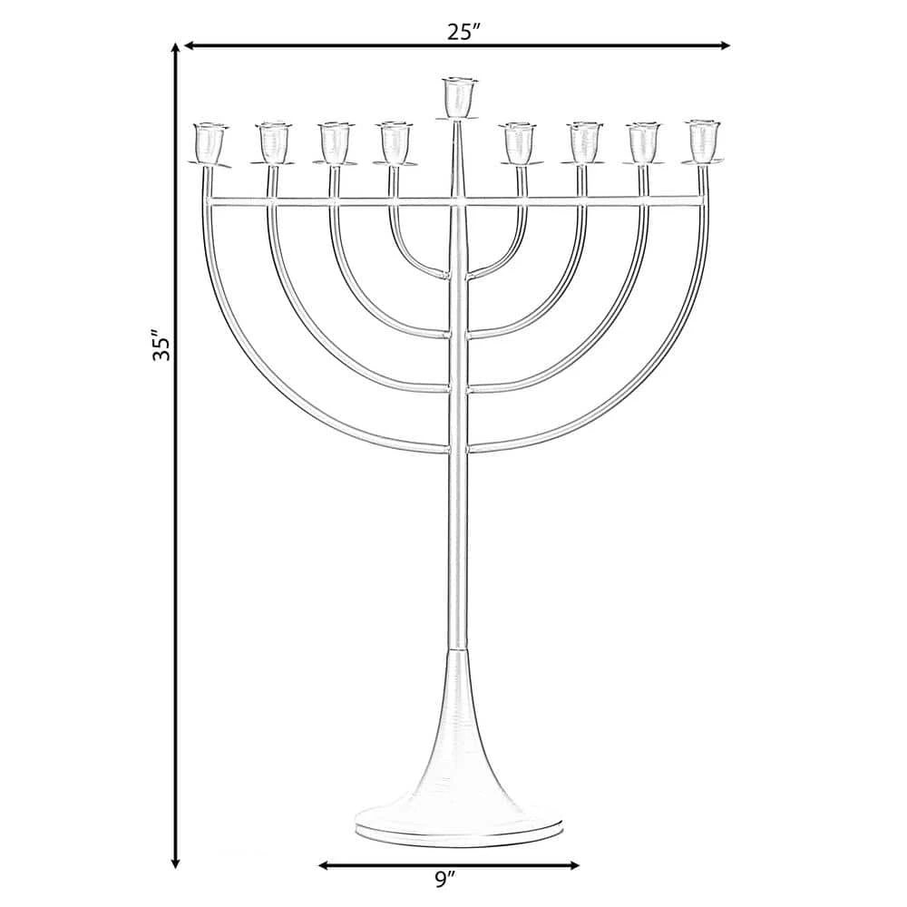 Create a warm inviting glow with this modern metal Hanukkah menorah. Its unique modern design will add a contemporary appeal to your entryway, dining room, living room, foyer or room corner. Use with a traditional white candle or get creative with bright colors that will add an undulating visual effect. Assembly is easy, the branches and stand come pre-assembled, so you will only need to slide them into place. Decorate your home while adding a warm and modern charm.