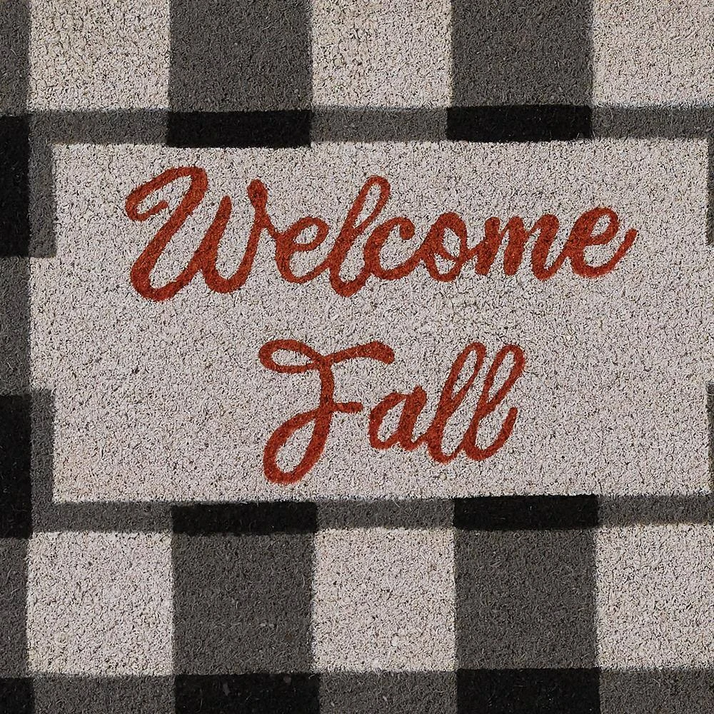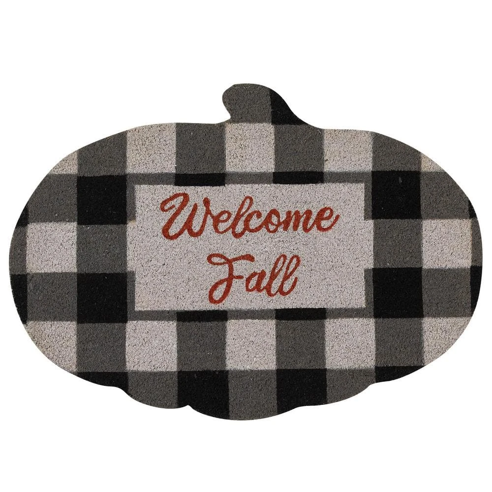 Create a warm and inviting entryway with the Welcome Fall Plaid Door Mat. Featuring a charming black and white buffalo check pattern and a cheerful fall sentiment, this natural coir mat adds seasonal flair to your doorstep. Hand-printed with fade- and skid-resistant dyes, it’s built to remain vibrant throughout the season. The sturdy bristles are designed to absorb moisture and trap dirt, keeping your home clean while enhancing its autumnal charm. Pair it with a festive wreath or potted plants for a perfectly coordinated fall-themed look that’s both functional and stylish.